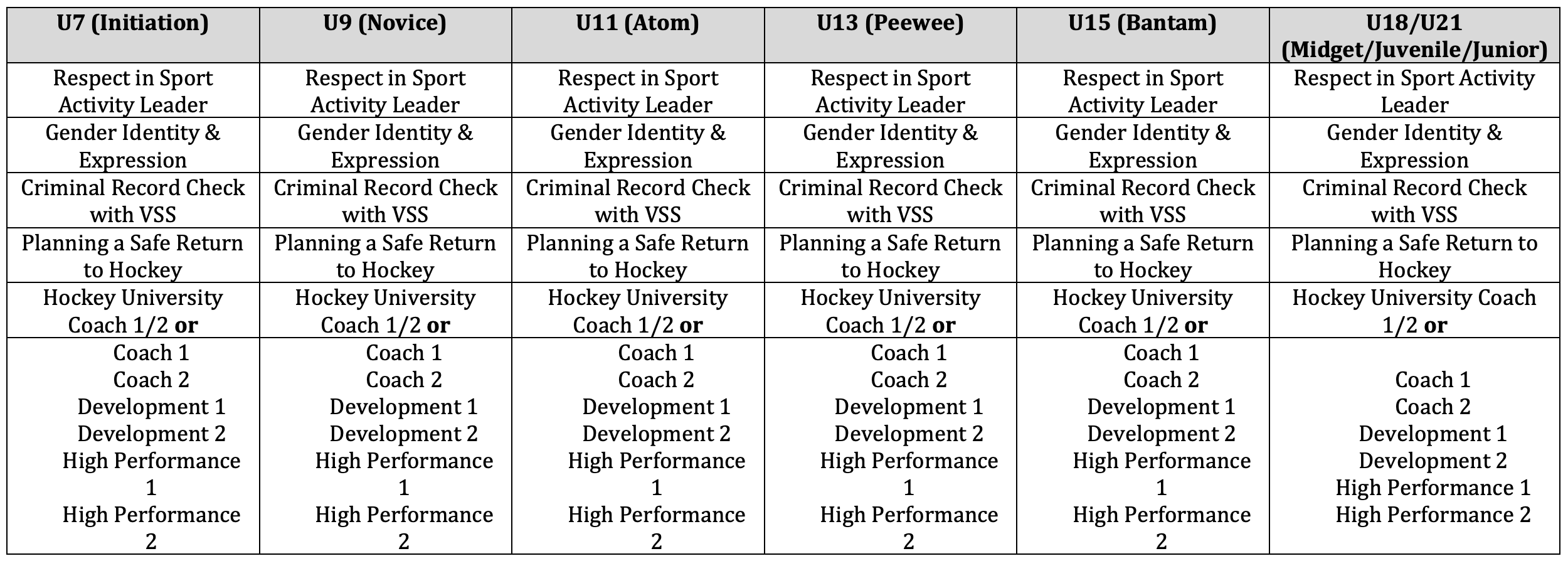 You do not need to re-do your certifications. If you have them, then you are good to fill the role. The only thing everyone needs to do this season, as it’s new, is the Planning A Safe Return to Hockey course and ensure your Criminal Record Check is still valid.